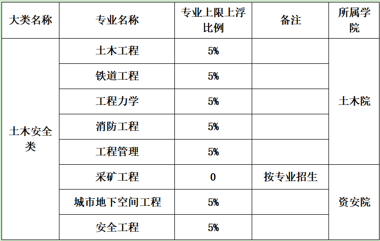 5.学生如有异议,可在公示期内向土木安全类专业分流工作小组书面反映,由工作小组负责答复。