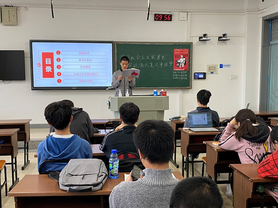10月17日上午9:30,联合团支部于新校区A座202教室开展“学习百年党史,传承红色基因”大联谊活动,由各团支部团支书依次进行主持。为了更好地贯彻学习习近平新时代中国特色社会主义思想,主持人依据文字和视频资料进行讲解,同时点明了学习和了解社会主义的重要性。再结合现实,就当下的一些热点事件,提出了一些自己的观点和看法,带动大家一起思考,使青年团员们感悟颇深,受益良多。