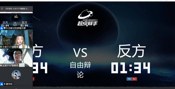 为提高同学的思辨综合素养并丰富同学的课余生活,威廉希尔官网于11月6日15:00举行了辩论队招新赛。本次招新赛以线上的方式进行并由辩论队队长王亚芳同学以及毛赛同学、菅昊同学和李瑞圆同学担任评委。