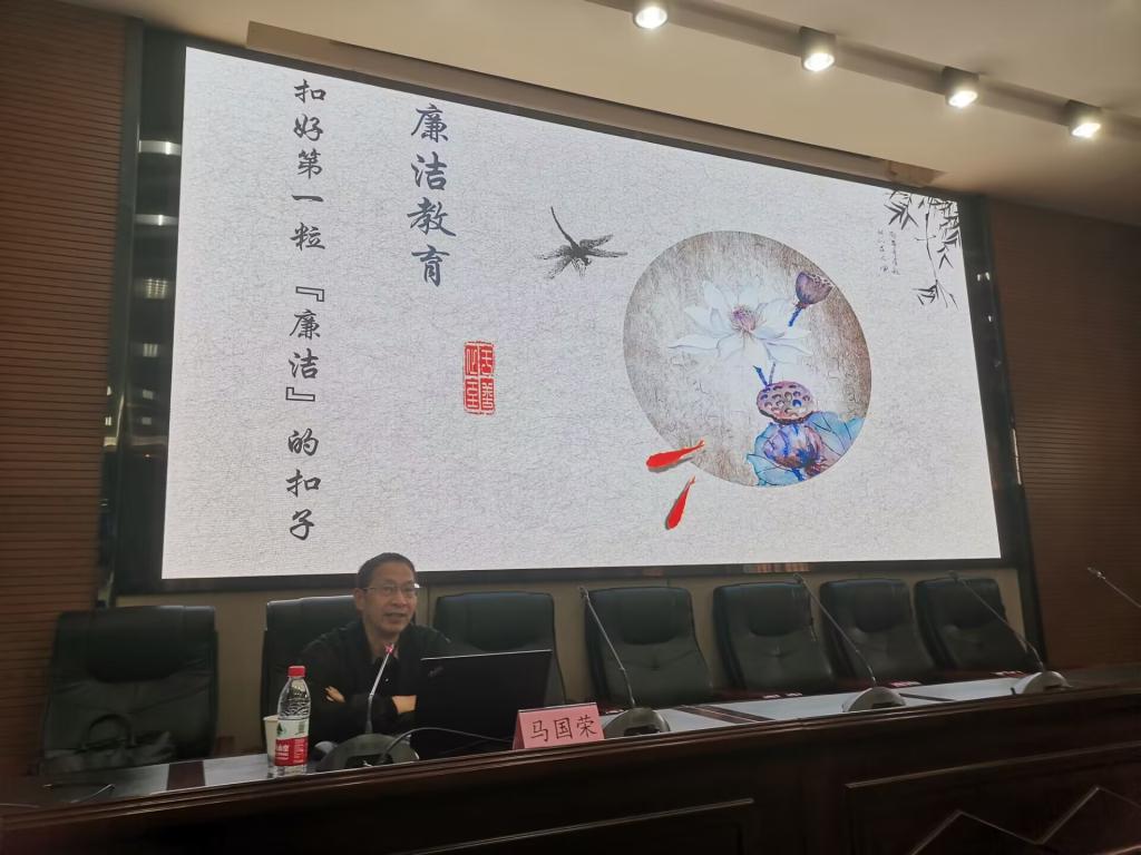 为落实《2022级新生入学教育实施方案》中面向青年学生“廉洁文化教育”一个都不能少的工作安排,引导大学新生认清腐败问题的本质,树立“廉荣腐耻”的荣辱观和是非观,培养其遵纪守法、诚信正直的精神品格。2022年10月9日,威廉希尔官网在采矿楼T302由威廉希尔官网党委副书记马国荣担任主讲人,为我院2022级全体本科新生授“廉洁文化教育”专题讲座。