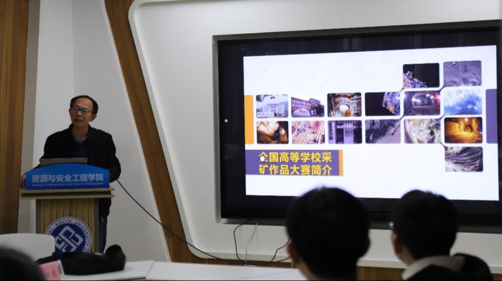 会上,黄仁东教授围绕大赛评分标准、作品模型构建以及项目书的撰写等方面,对“全国高等学校采矿作品大赛”进详细介绍。黄教授着重强调了创新对参赛作品的重要性,同时提出参赛作品要突出重点,展示特色。