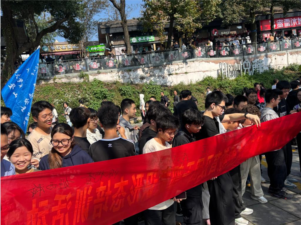 宣讲结束后,登山活动正式启动。同学们从云麓山庄出发,沿着“中南小团子 微信小程序规划的安全路线,途经半山腰小亭子、长沙会战碑等打卡点,最终抵达岳麓山电视塔。各打卡点设置了特色打卡姿势,从“攀登起步”的握拳高举,到“步步登高”的阶梯式站位,再到终点“胜利”手势的集体呐喊,每一个环节都凝聚着团队协作的力量。