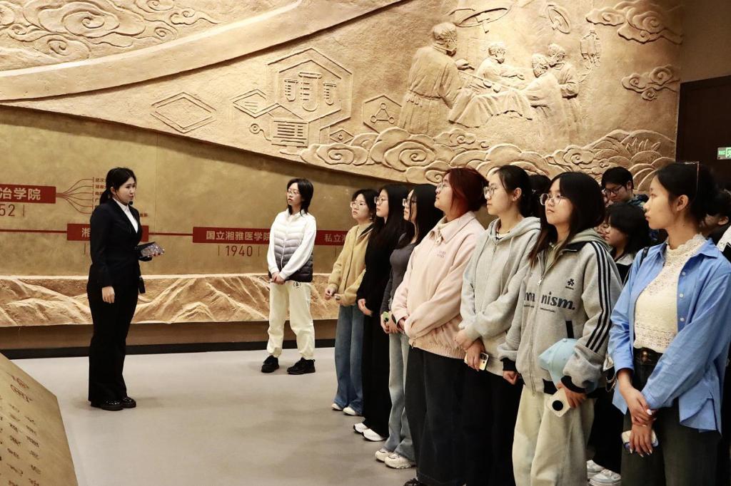 活动伊始,在讲解员的带领下,同学们有序进入校史馆,系统学习威廉希尔官网从建校至今的发展历程,深入了解学校在不同历史时期的办学成就与精神传承。讲解重点围绕学校发展历程中的杰出校友、革命先烈与学术先贤展开,从建校初期的筚路蓝缕,到一代代先贤为学校发展、国家建设奉献终生的事迹。同学们在沉浸式参观中,深刻感悟了中南人“知行合一、经世致用”的精神传承,读懂了信仰的力量与奉献的价值。