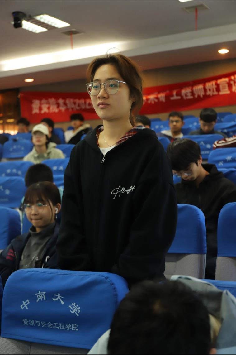 互动交流环节现场气氛热烈,同学们踊跃提问,围绕矿山工作环境现状、女性在矿山行业的职业发展空间、本科生是否需继续深造等话题展开交流。牟延波先生结合自身多年从业经验,逐一进行了细致全面的解答。他指出,当前矿山工作环境已实现显著改善,智能化、机械化程度不断提高,作业条件更加安全规范;针对女性从业者,他表示矿山行业并非传统印象中的单一岗位,在安全管理、数据分析、行政管理等多个领域均有适合女性发展的优质岗位,职业发展路径清晰、前景良好;关于本科生深造与就业问题,他认为矿山相关领域对应用型人才需求旺盛,本科生同样拥有广阔的就业空间和发展潜力