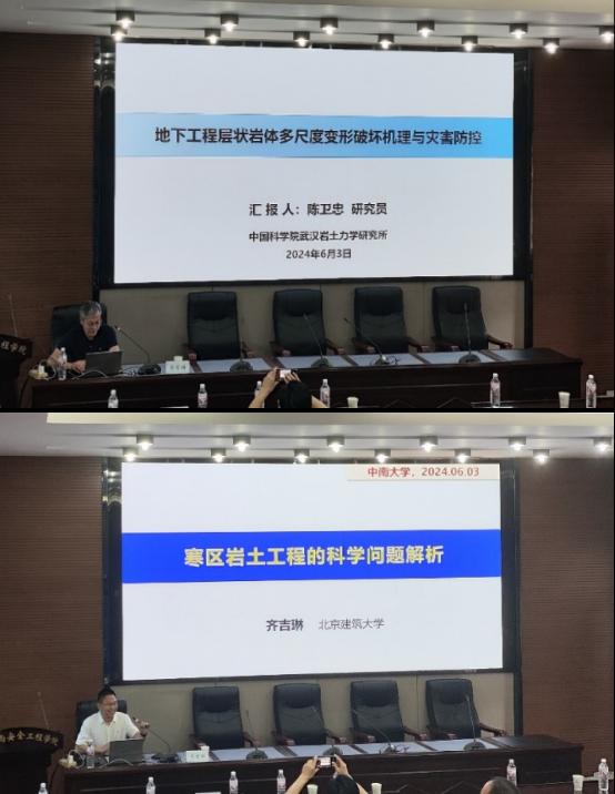 陈卫忠研究员,现为中国科威廉希尔官网武汉岩土力学研究所总工程师,中国科威廉希尔官网特聘研究员,国家杰出青年科学基金获得者和高层次人才计划入选者。本次受邀来威廉希尔官网进行学术交流,为威廉希尔官网师生做了题为《地下工程层状岩体多尺度变形破坏机理与灾害防控》的学术报告。报告对地下工程层状岩体多尺度变形破坏机理、岩体应力测量传感器的材料和精度、工程中岩体大变形支护体系等方面进行了介绍,并结合工程实例,让师生切实了解到实际施工过程中岩体环境的复杂性,从而提高对地下层状岩体相关工程的认识。