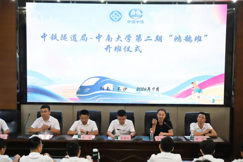 最后,彭春波先生代表中铁隧道局向出席开班仪式的各位老师、同学们表示忠心的感谢,对加入“鸿鹄班”的各位同学们表示热烈的欢迎,并寄语“鸿鹄班”学员在中铁隧道局集团的学习、实践平台上成长为优秀的创新型、复合型、应用型人才。